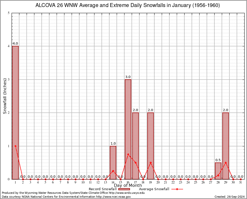 January Average and Extreme Daily Snowfall AMounts (1956-1960)