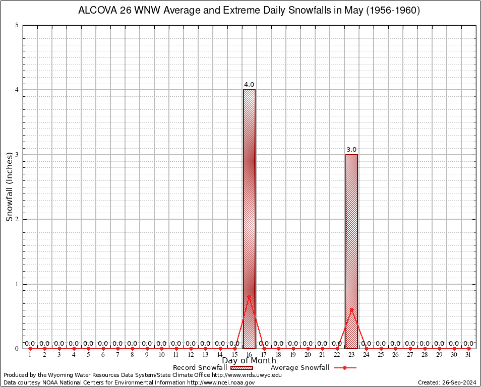 May Average and Extreme Daily Snowfall AMounts (1956-1960)