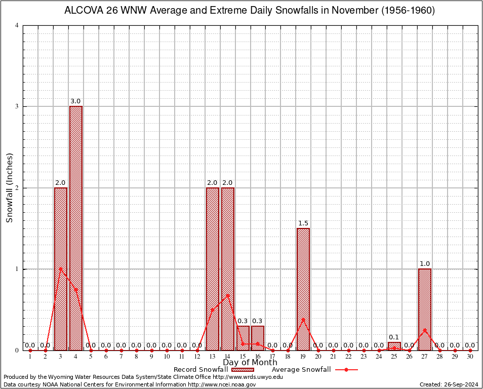 November Average and Extreme Daily Snowfall AMounts (1956-1960)