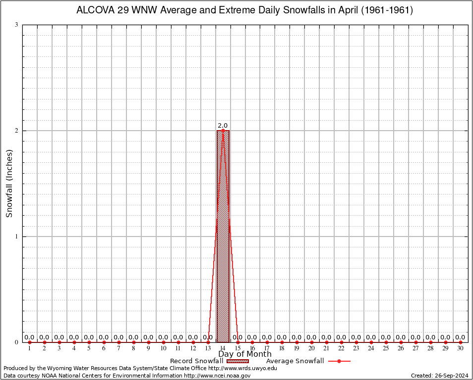 April Average and Extreme Daily Snowfall AMounts (1961-1961)
