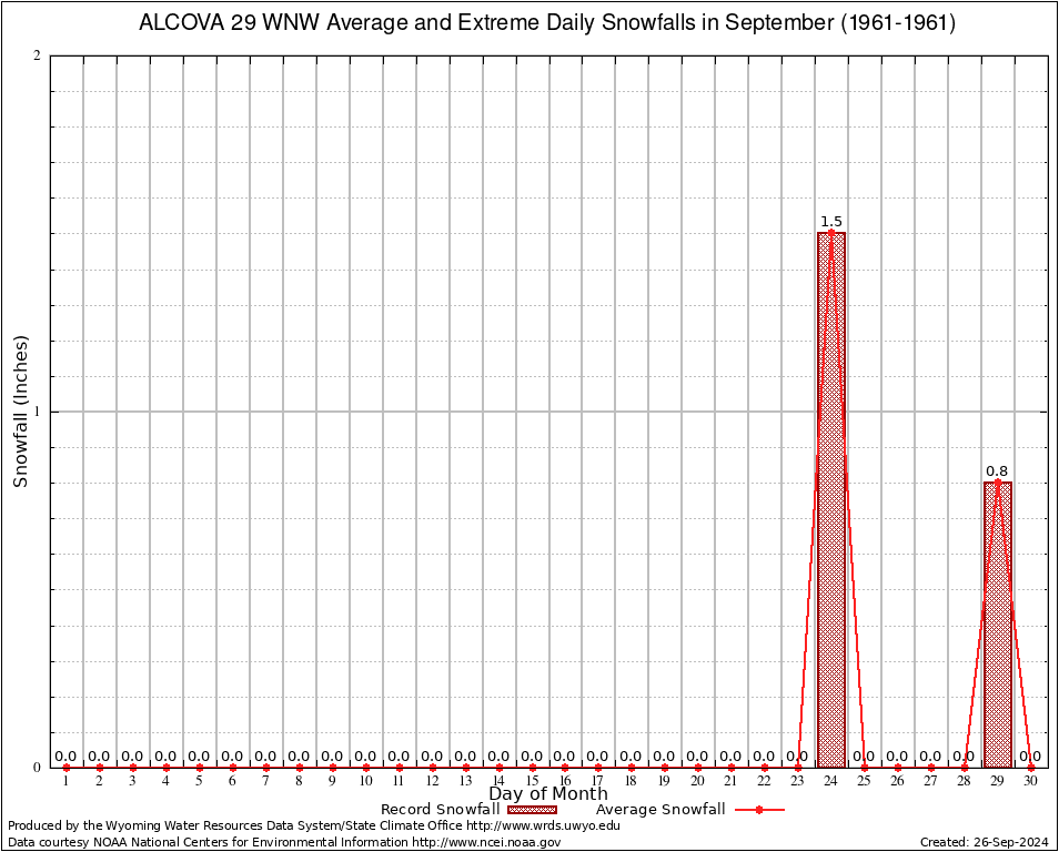 September Average and Extreme Daily Snowfall AMounts (1961-1961)