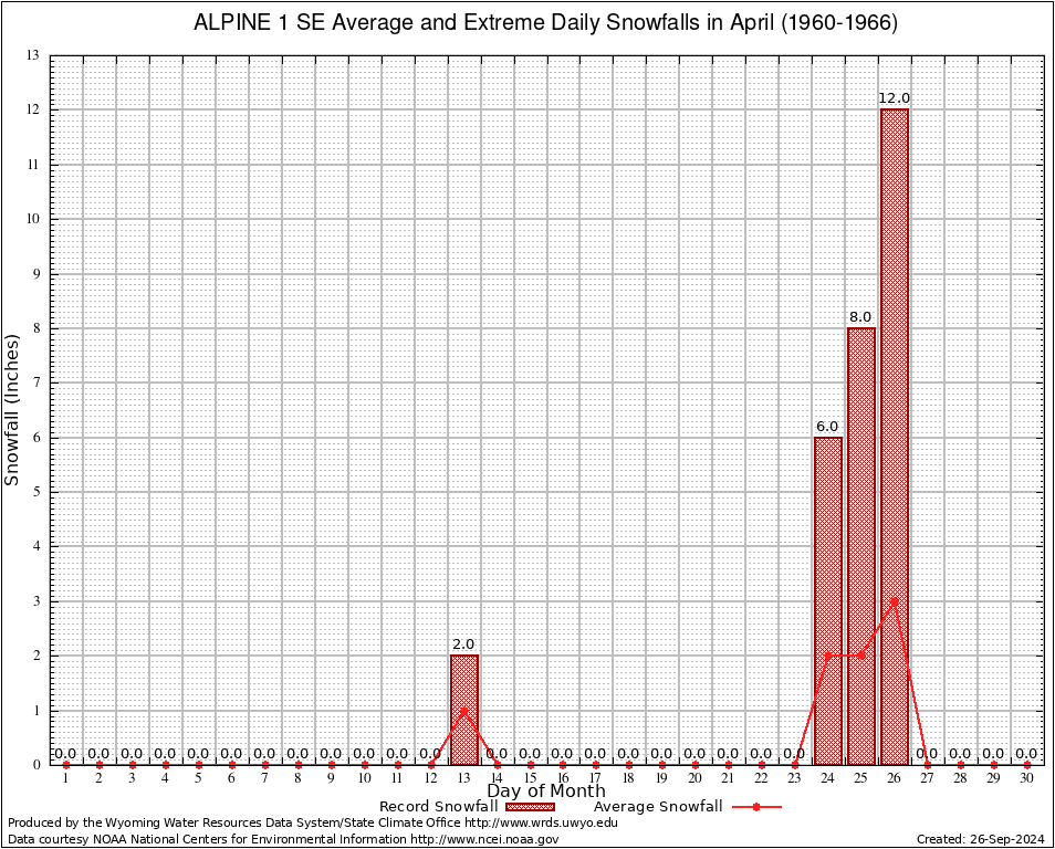 April Average and Extreme Daily Snowfall AMounts (1960-1966)