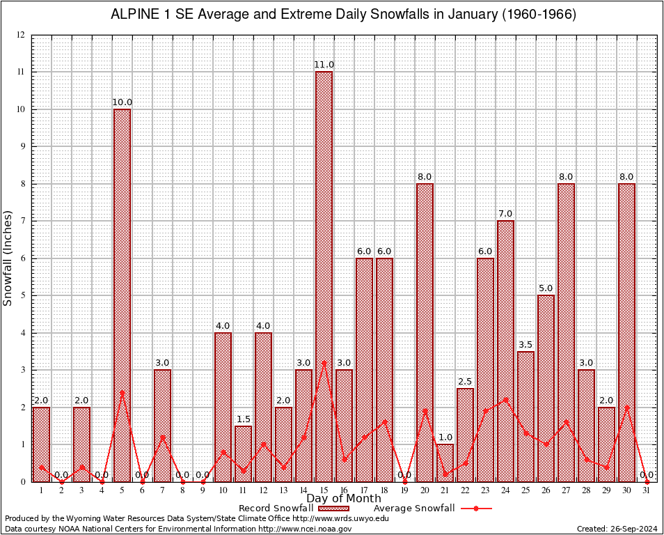 January Average and Extreme Daily Snowfall AMounts (1960-1966)