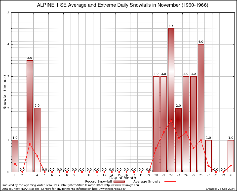 November Average and Extreme Daily Snowfall AMounts (1960-1966)