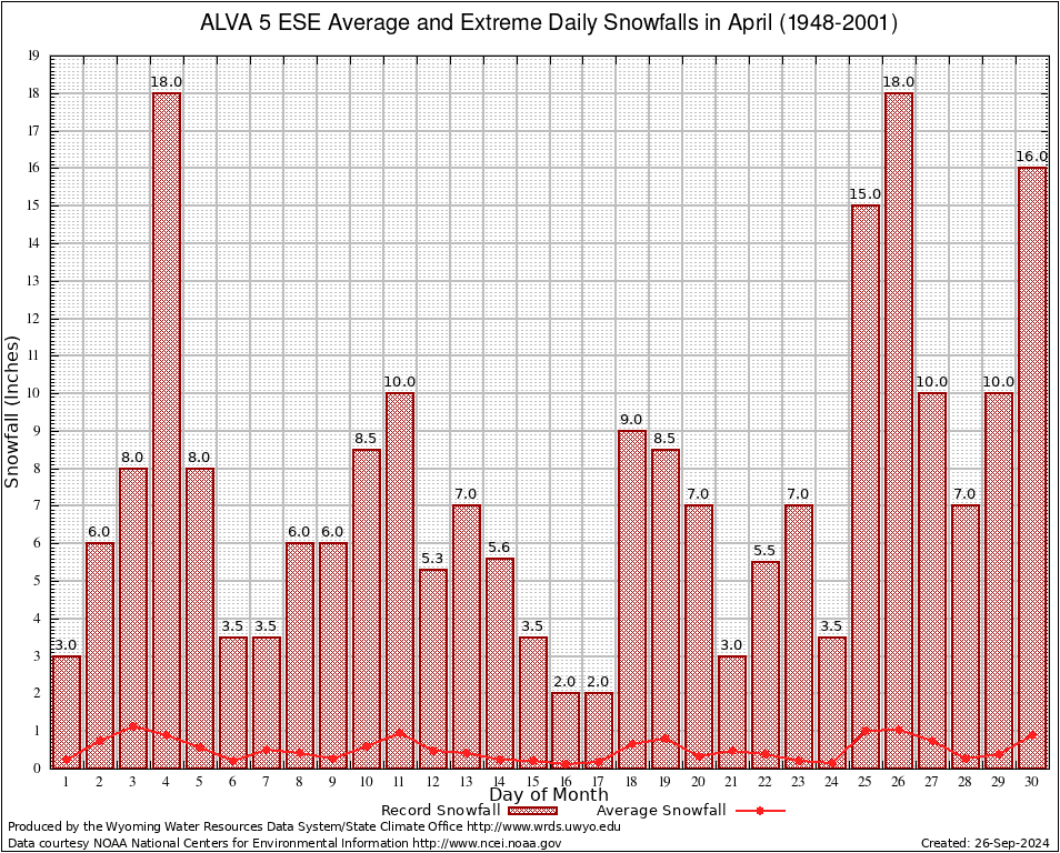 April Average and Extreme Daily Snowfall AMounts (1948-2001)