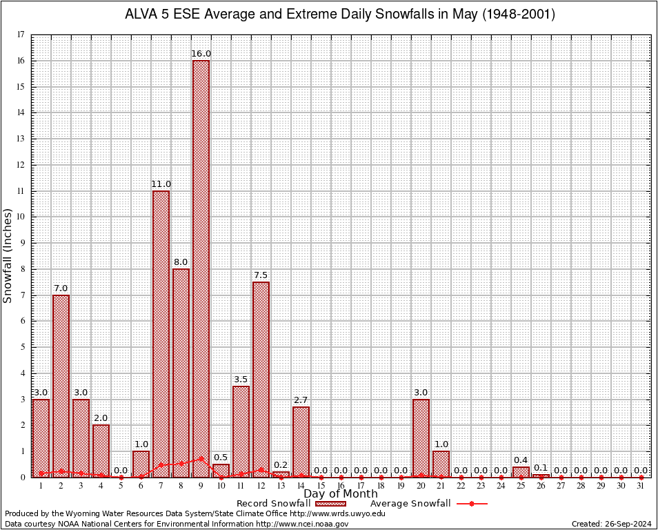 May Average and Extreme Daily Snowfall AMounts (1948-2001)