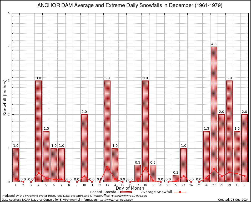 ANCHOR DAM (480228) December Average and Extreme Daily Snowfall AMounts (1961-1979) To index page for ANCHOR DAM