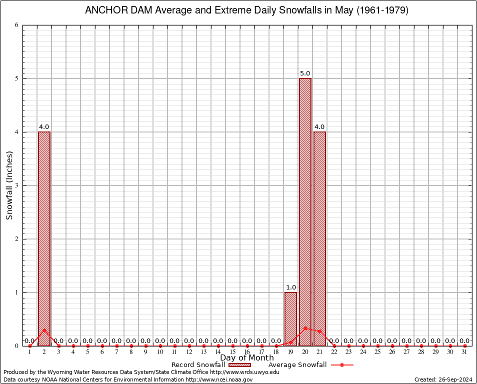 May Average and Extreme Daily Snowfall AMounts (1961-1979)