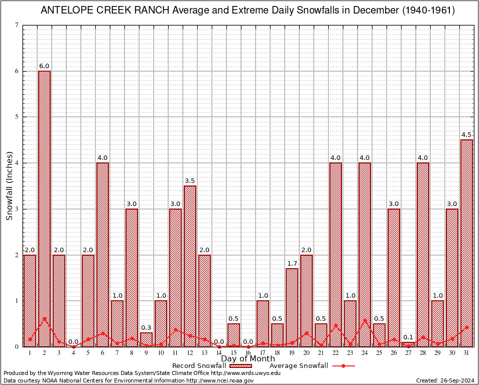December Average and Extreme Daily Snowfall AMounts (1940-1961)