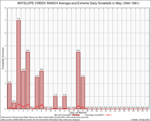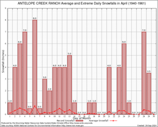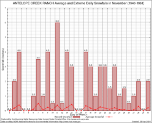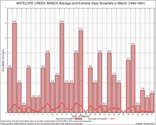 ANTELOPE CREEK RANCH (480233) Record Extreme and Average Daily Snowfall (1940-1961) See Here for Other Stations
