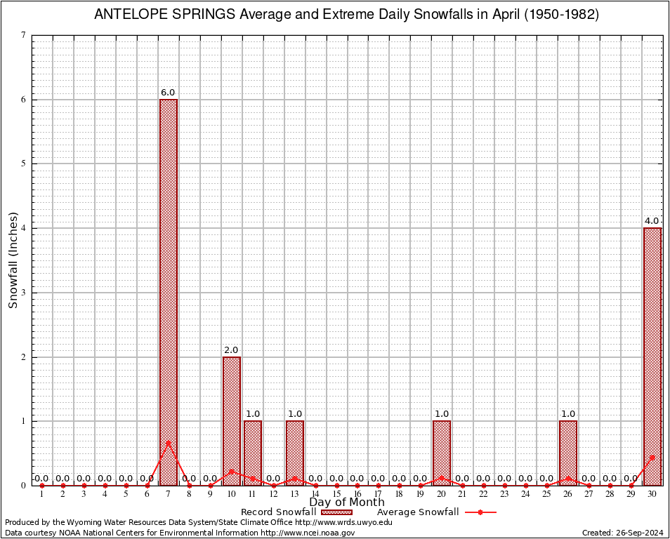 April Average and Extreme Daily Snowfall AMounts (1950-1982)