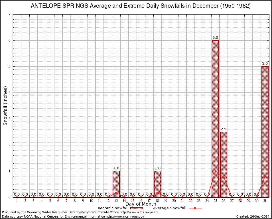 December Average and Extreme Daily Snowfall AMounts (1950-1982)