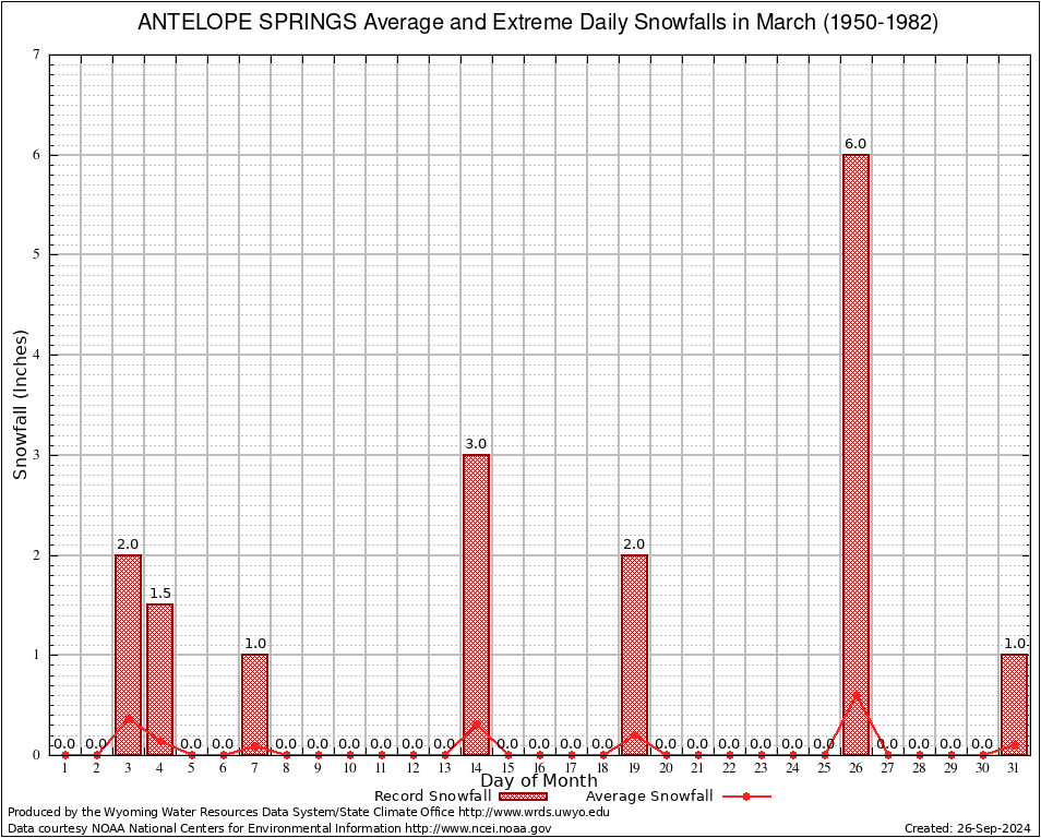 March Average and Extreme Daily Snowfall AMounts (1950-1982)