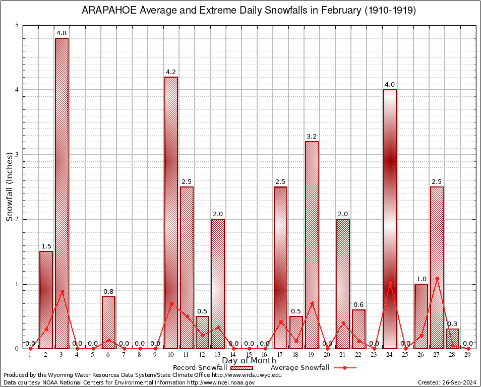 ARAPAHOE (480245) February Average and Extreme Daily Snowfall AMounts (1910-1919) To index page for ARAPAHOE