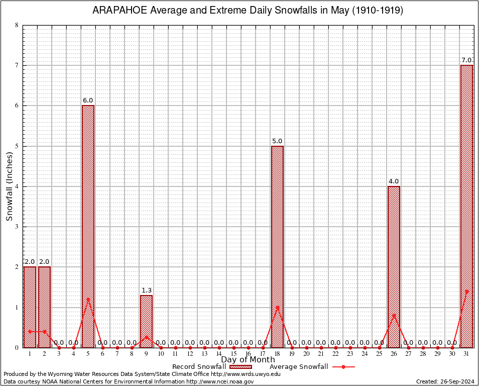 May Average and Extreme Daily Snowfall AMounts (1910-1919)