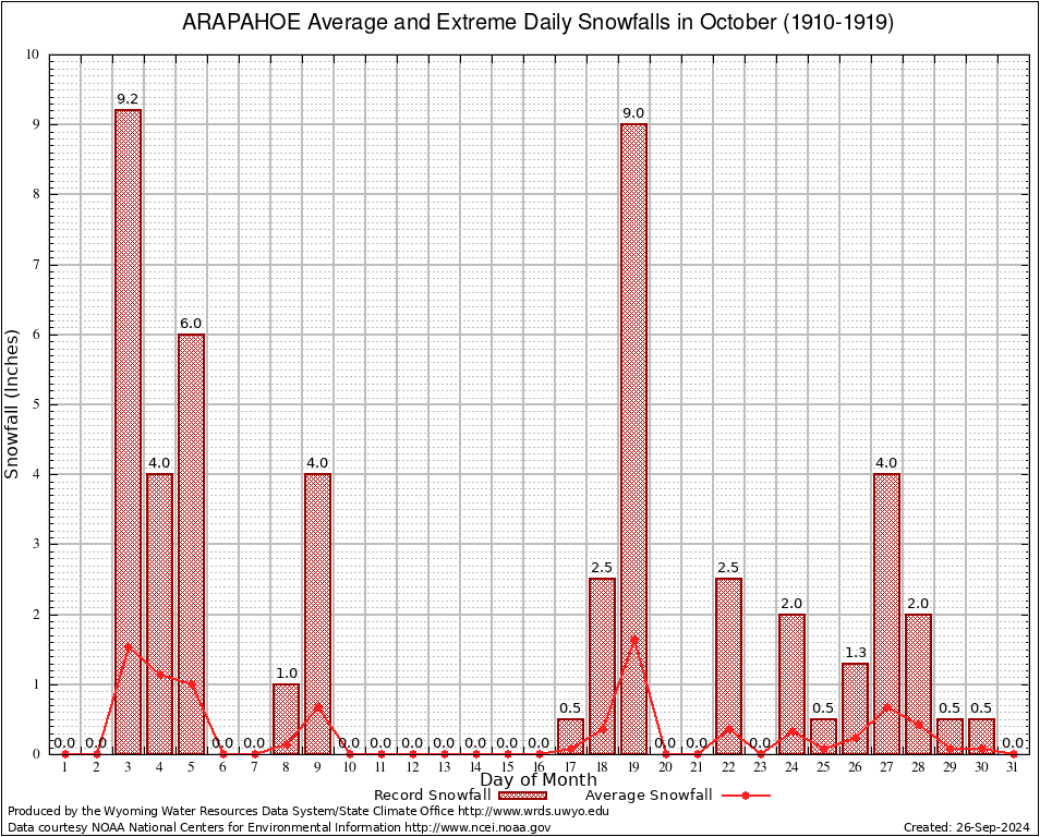 ARAPAHOE (480245) October Average and Extreme Daily Snowfall AMounts (1910-1919) To index page for ARAPAHOE