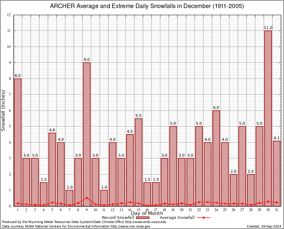 ARCHER (480270) December Average and Extreme Daily Snowfall AMounts (1911-2005) To index page for ARCHER