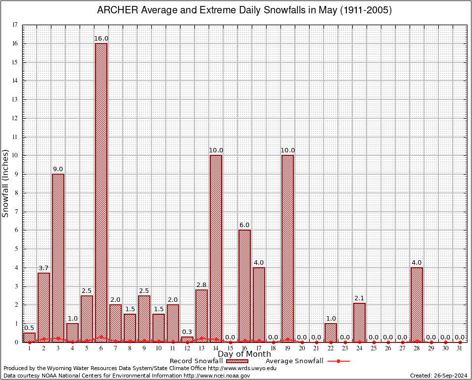 ARCHER (480270) May Average and Extreme Daily Snowfall AMounts (1911-2005) To index page for ARCHER