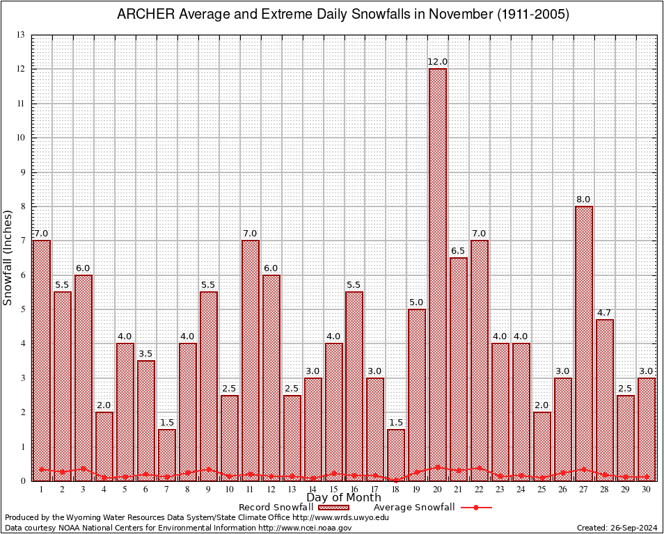 ARCHER (480270) November Average and Extreme Daily Snowfall AMounts (1911-2005) To index page for ARCHER