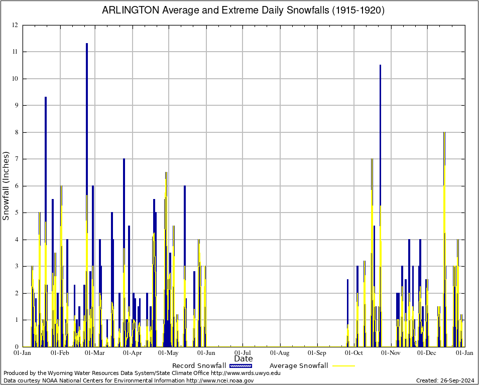 ARLINGTON (480315) Annual Average and Extreme Daily Snowfall AMounts (1915-1920) To index page for ARLINGTON