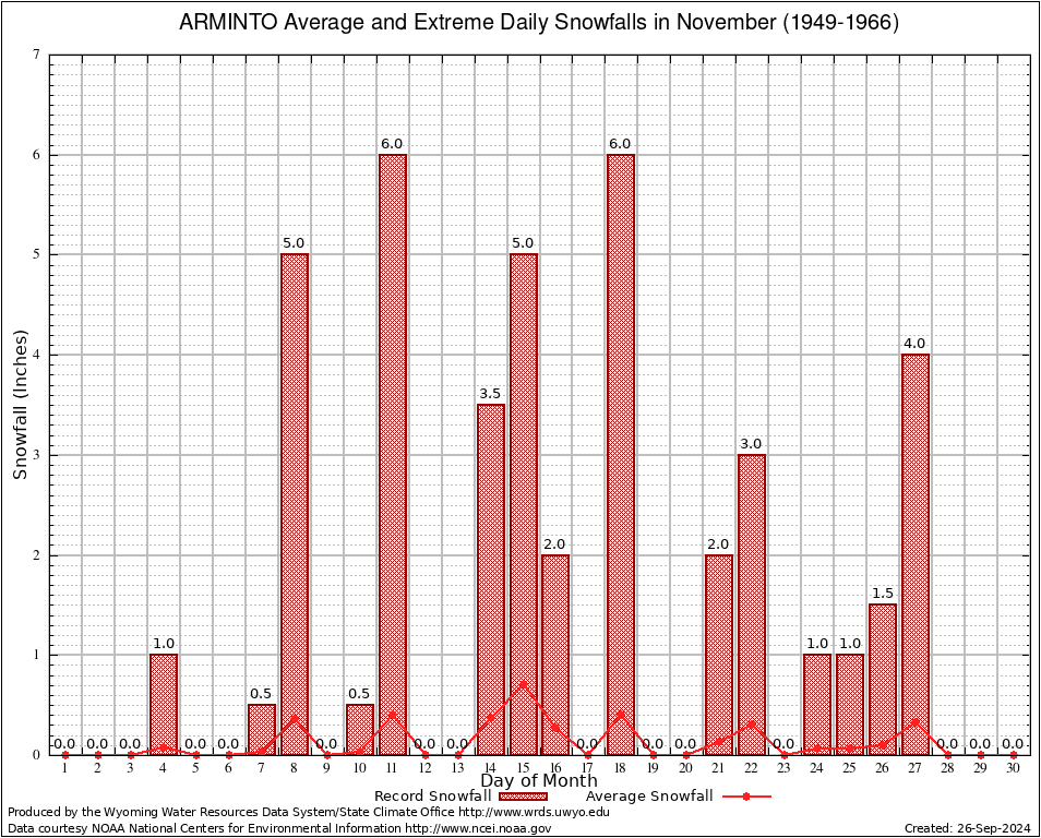 ARMINTO (480324) November Average and Extreme Daily Snowfall AMounts (1949-1966) To index page for ARMINTO