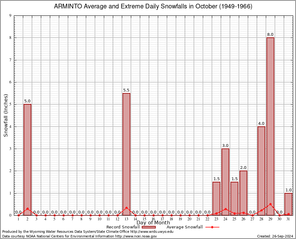 ARMINTO (480324) October Average and Extreme Daily Snowfall AMounts (1949-1966) To index page for ARMINTO