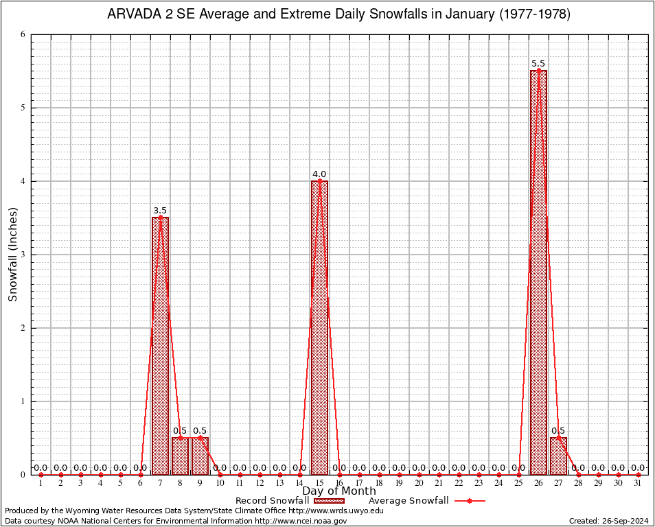 January Average and Extreme Daily Snowfall AMounts (1977-1978)