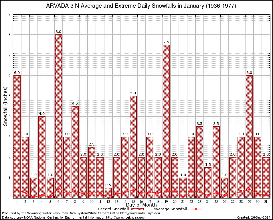 January Average and Extreme Daily Snowfall AMounts (1936-1977)