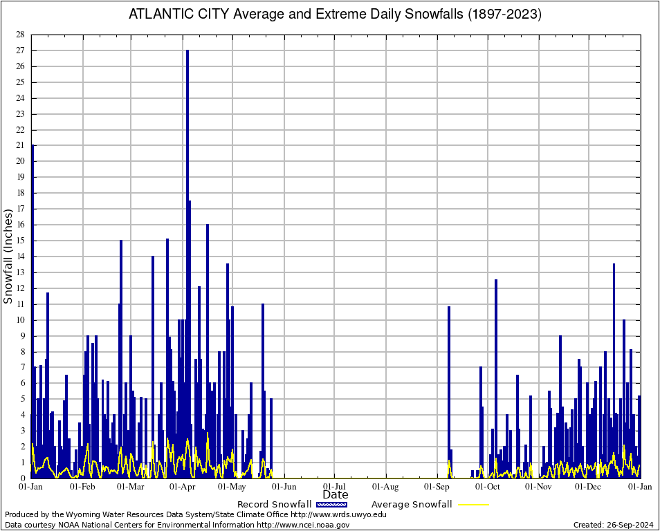 Annual Average and Extreme Daily Snowfall AMounts (1897-2023)