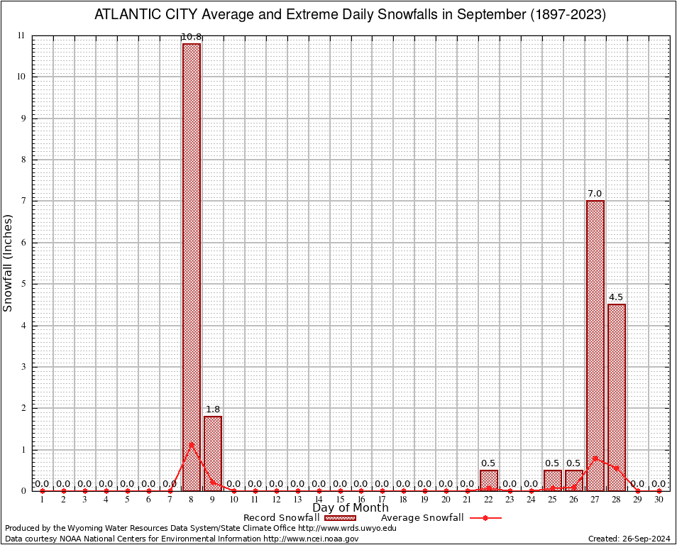 September Average and Extreme Daily Snowfall AMounts (1897-2023)