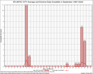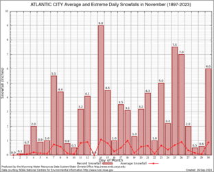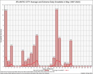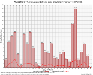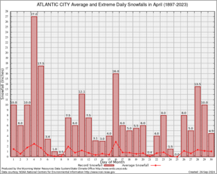 Record Extreme and Average Daily Snowfall (1897-2023)
