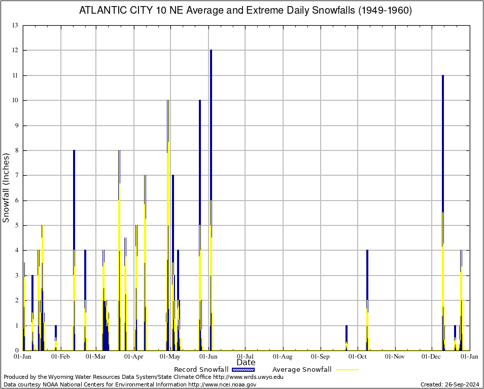 Annual Average and Extreme Daily Snowfall AMounts (1949-1960)
