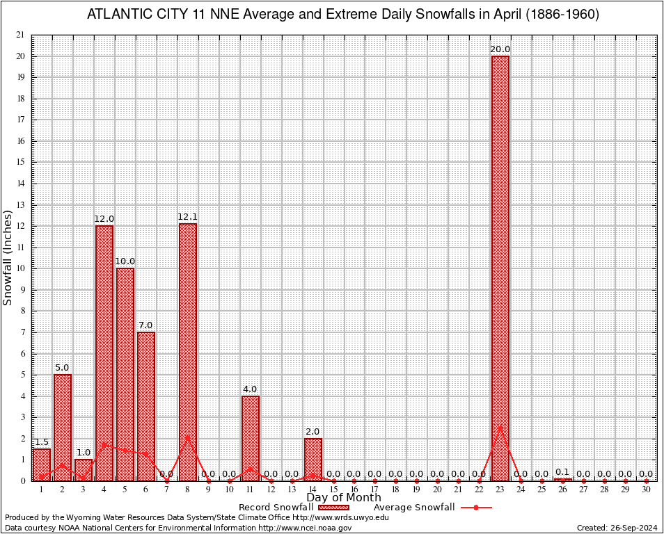 April Average and Extreme Daily Snowfall AMounts (1886-1960)