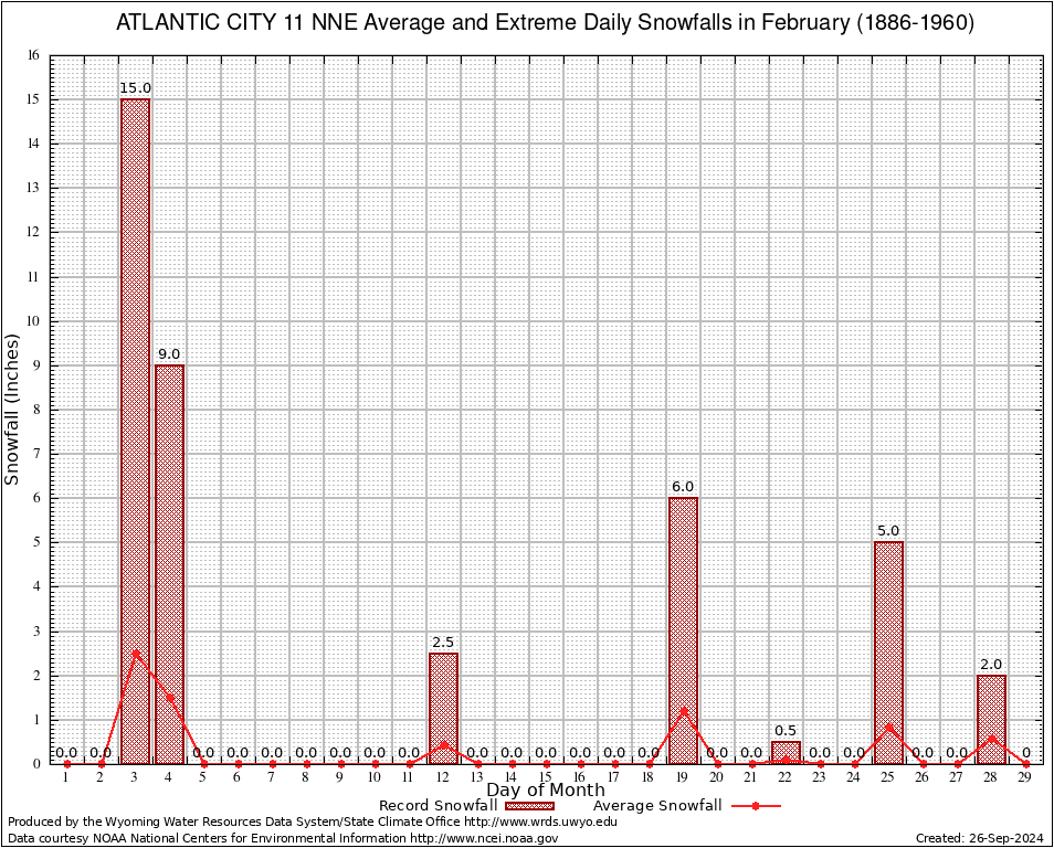 February Average and Extreme Daily Snowfall AMounts (1886-1960)