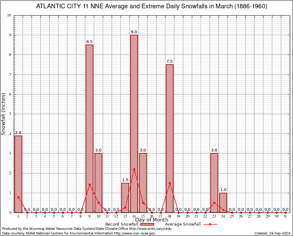 March Average and Extreme Daily Snowfall AMounts (1886-1960)