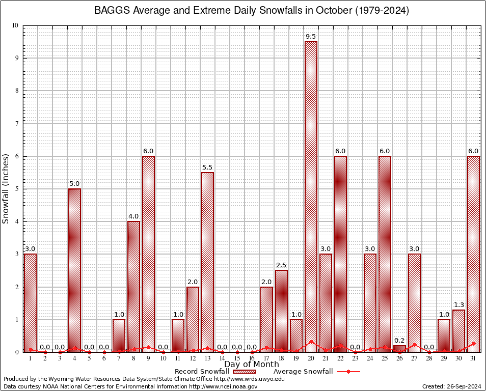 BAGGS (480484) October Average and Extreme Daily Snowfall AMounts (1979-2024) To index page for BAGGS