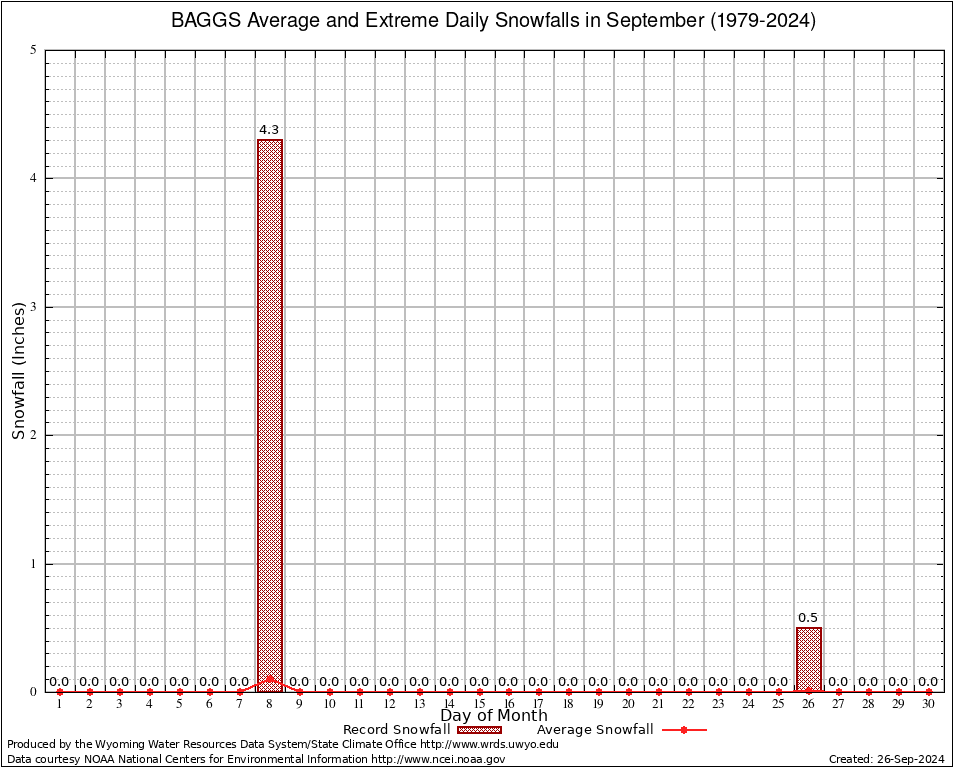 BAGGS (480484) September Average and Extreme Daily Snowfall AMounts (1979-2024) To index page for BAGGS