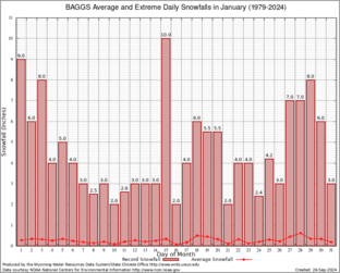 Record Extreme and Average Daily Snowfall (1979-2024)
