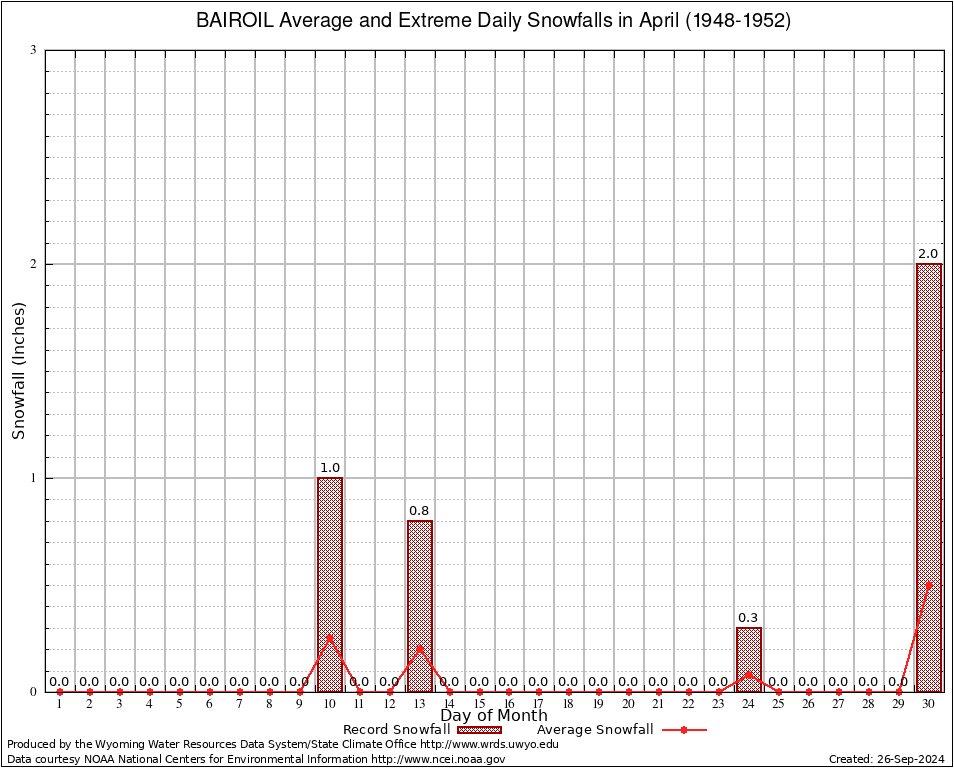 BAIROIL (480498) April Average and Extreme Daily Snowfall AMounts (1948-1952) To index page for BAIROIL
