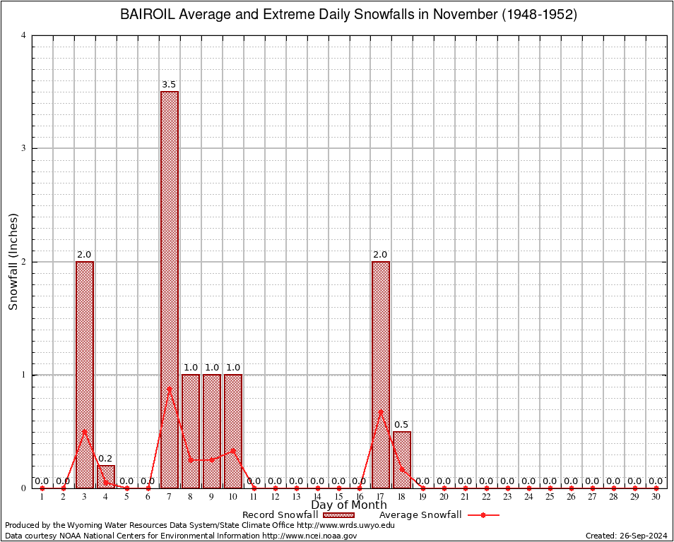 BAIROIL (480498) November Average and Extreme Daily Snowfall AMounts (1948-1952) To index page for BAIROIL