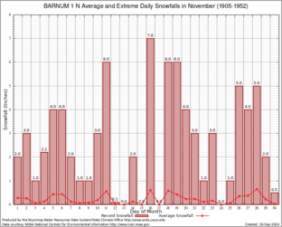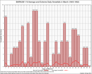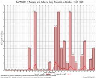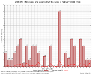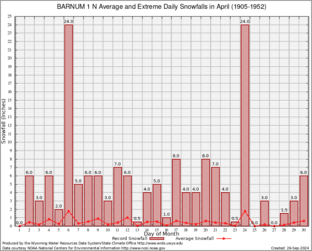Record Extreme and Average Daily Snowfall (1905-1952)