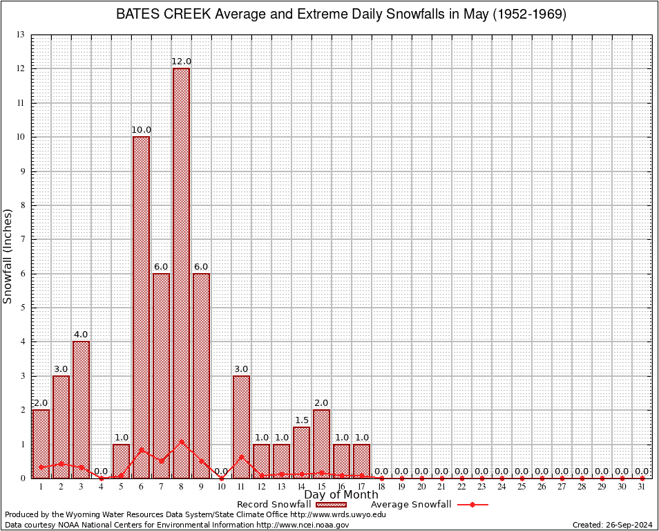 May Average and Extreme Daily Snowfall AMounts (1952-1969)