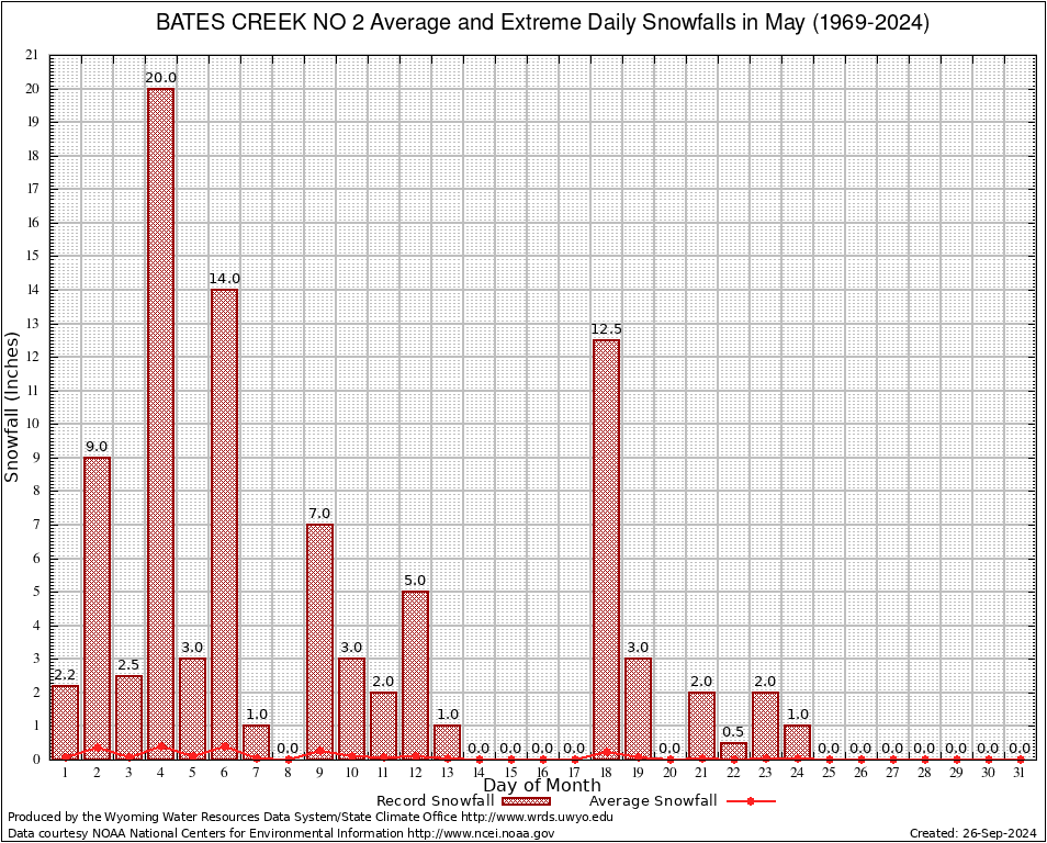 May Average and Extreme Daily Snowfall AMounts (1969-2024)