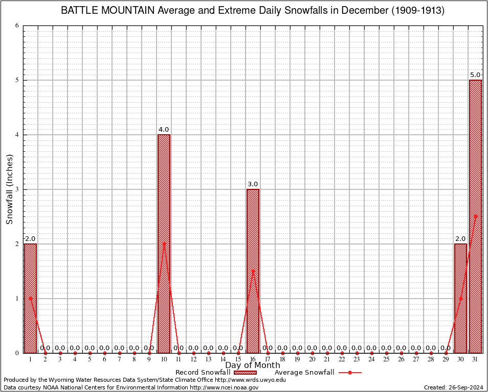 December Average and Extreme Daily Snowfall AMounts (1909-1913)