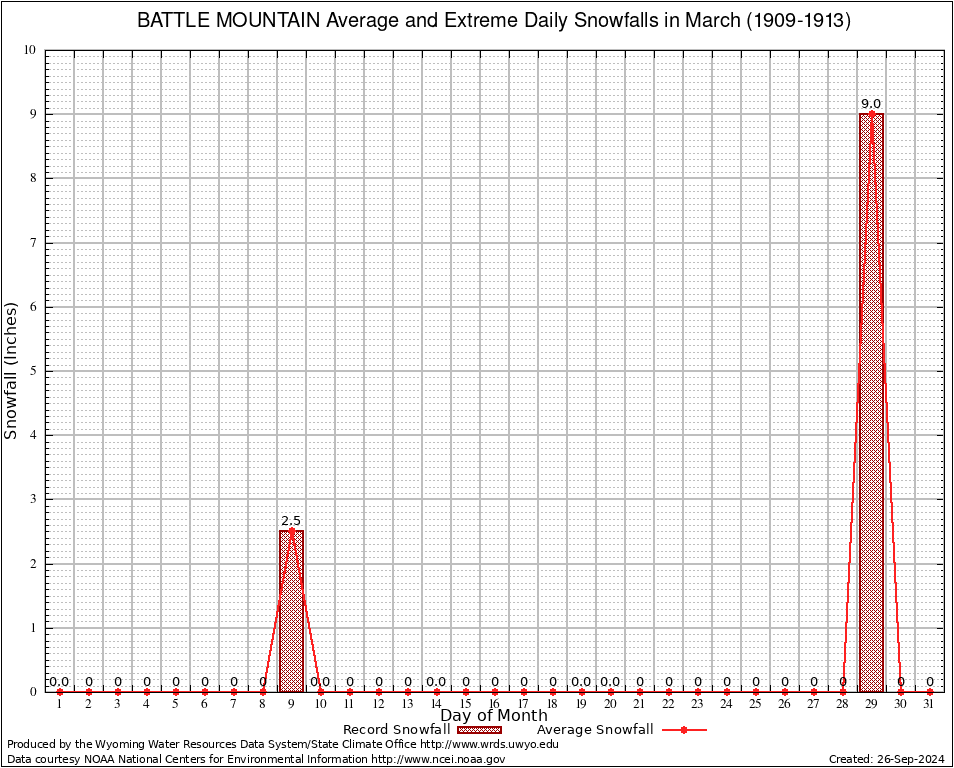 March Average and Extreme Daily Snowfall AMounts (1909-1913)