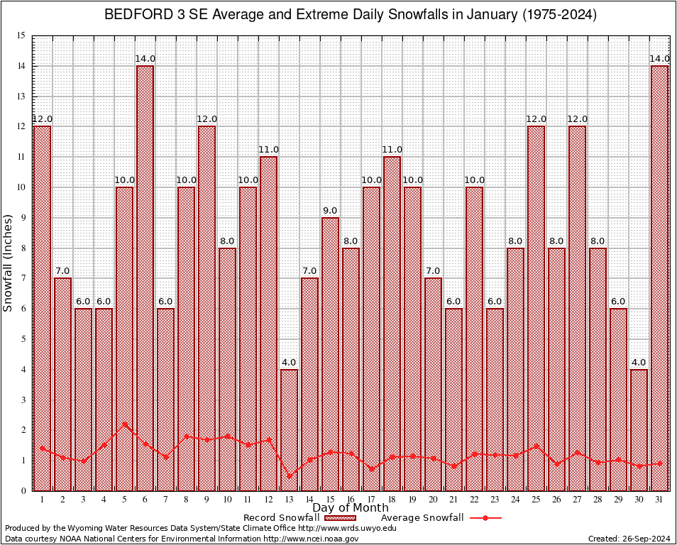 January Average and Extreme Daily Snowfall AMounts (1975-2024)