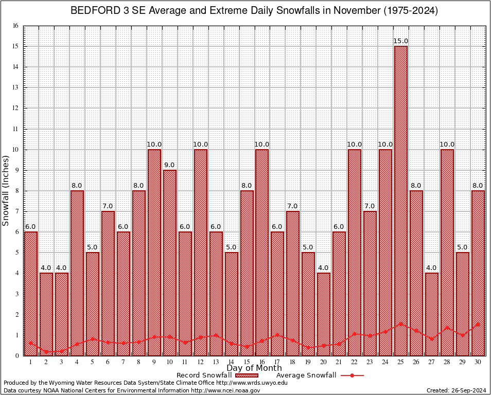 November Average and Extreme Daily Snowfall AMounts (1975-2024)