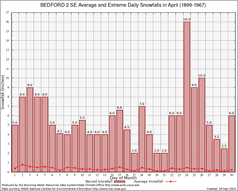 April Average and Extreme Daily Snowfall AMounts (1899-1967)