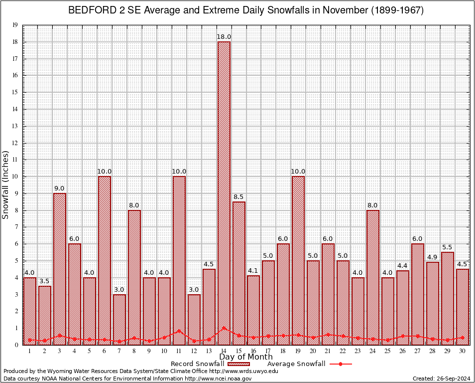 November Average and Extreme Daily Snowfall AMounts (1899-1967)