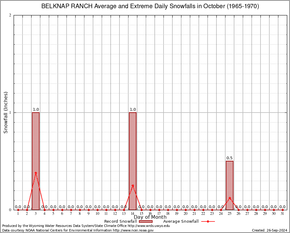 October Average and Extreme Daily Snowfall AMounts (1965-1970)